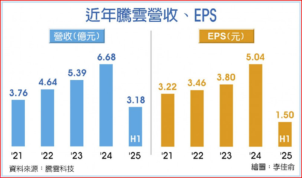 騰雲是台灣少數以「自有產品」透過「海外代理」模式拓展業務,已與國際大廠Hitachi Solutions與VINX結盟拓展海外業務,且海外收入連續六年占比超過30%。騰雲執行副總經理張婷婷進一步指出,騰雲已協助商業不動產管理客戶以AI結合AIoT解決方案優化能源管理,海外市場占該公司營收比重已逾43%,正加速朝50%占比的目標邁進。展望後市,騰雲樂觀看待2025下半年及2026年營收成長。