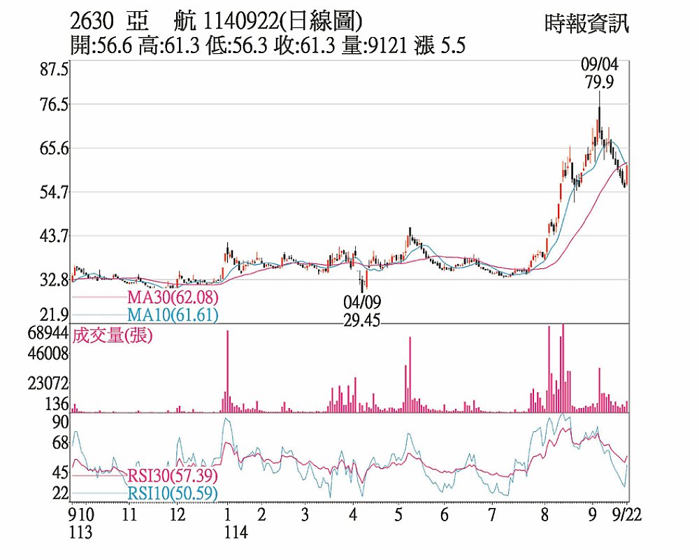 亞航(2630)1140922(日線圖)