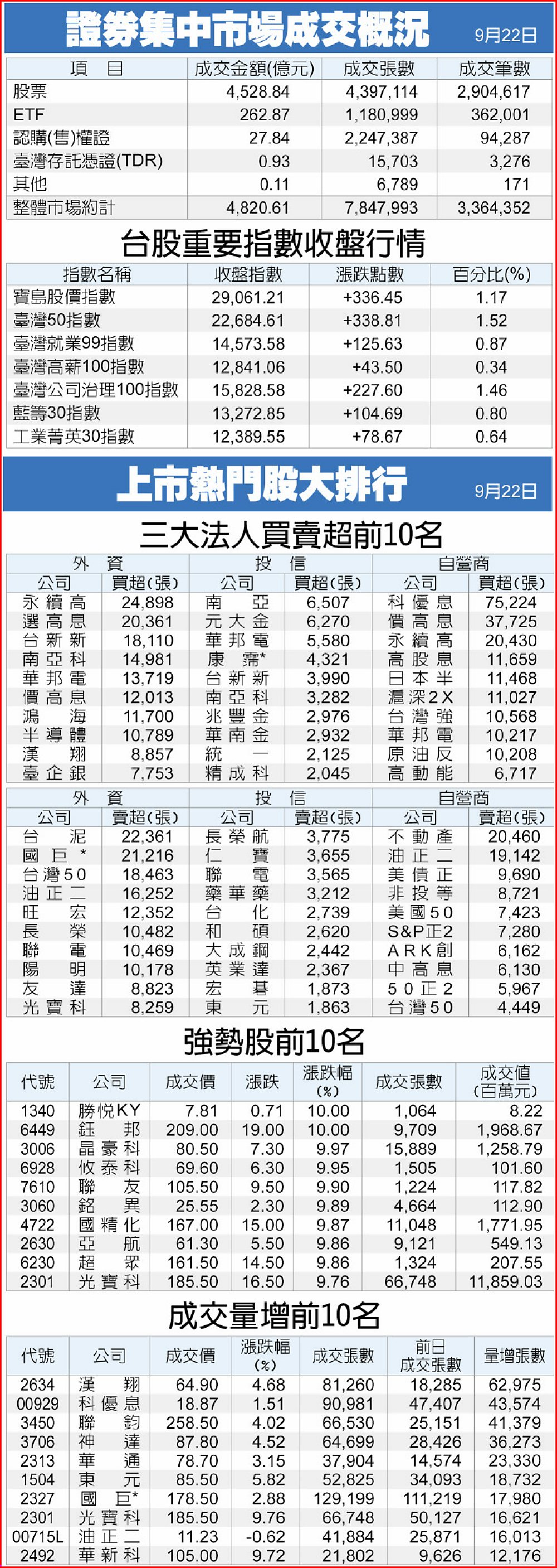 證券集中市場成交概況、上市熱門股大排行