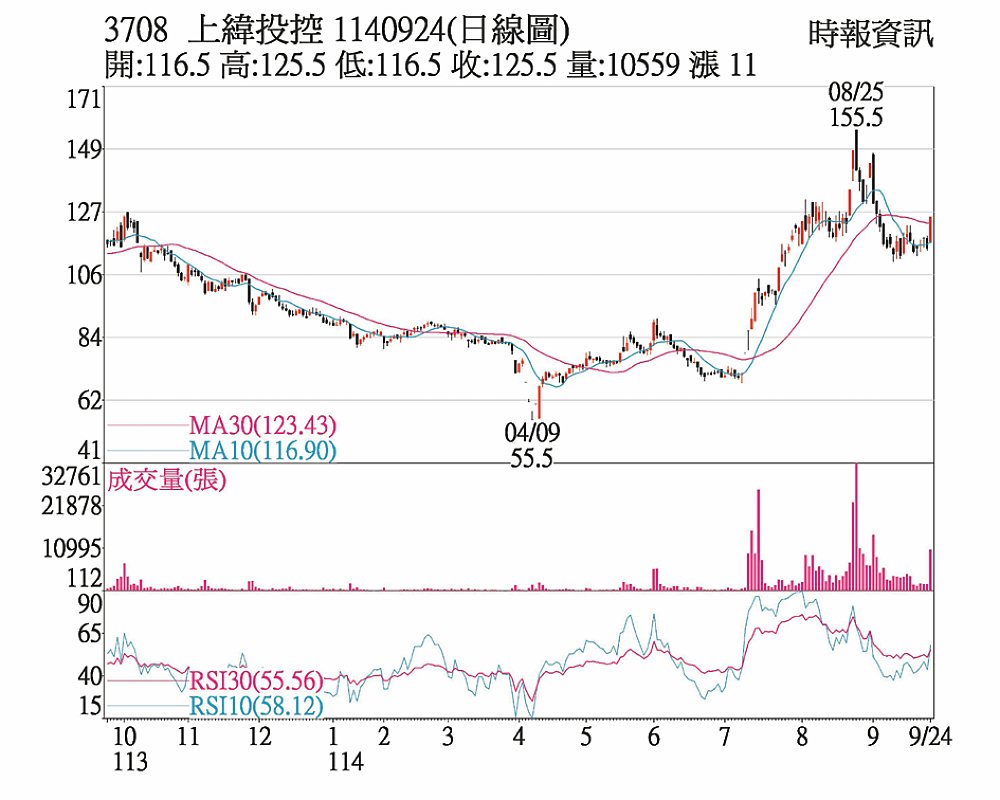 上緯投控(3708)1140924(日線圖)