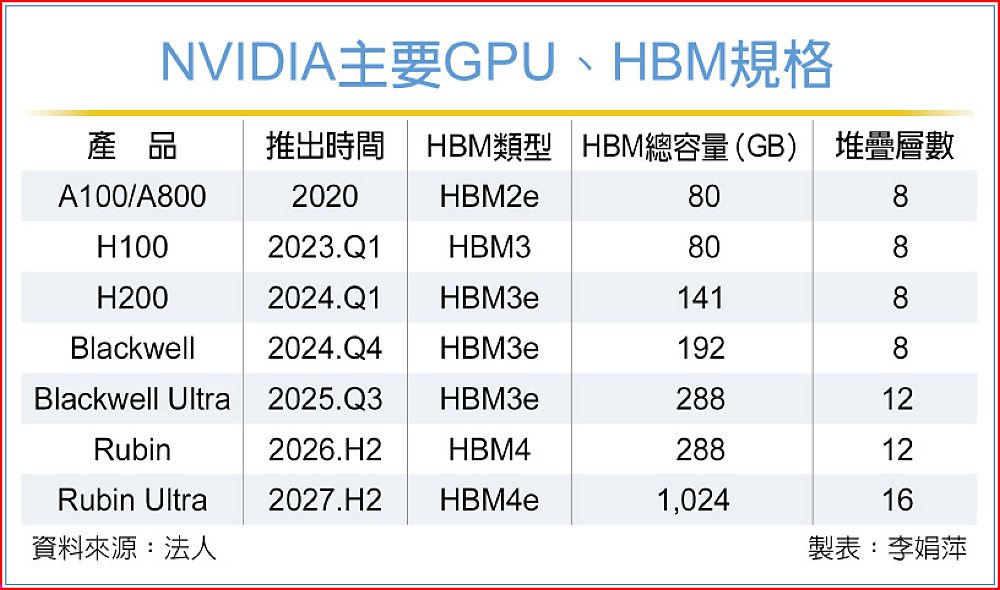 法人預估,HBM4 12層(12-Hi)初期合約價,將較2025年HBM3e 12-Hi價格溢價10%以上,而舊有HBM3e的年均價,則可能較2025年下滑約30%,這是正常世代替換現象。