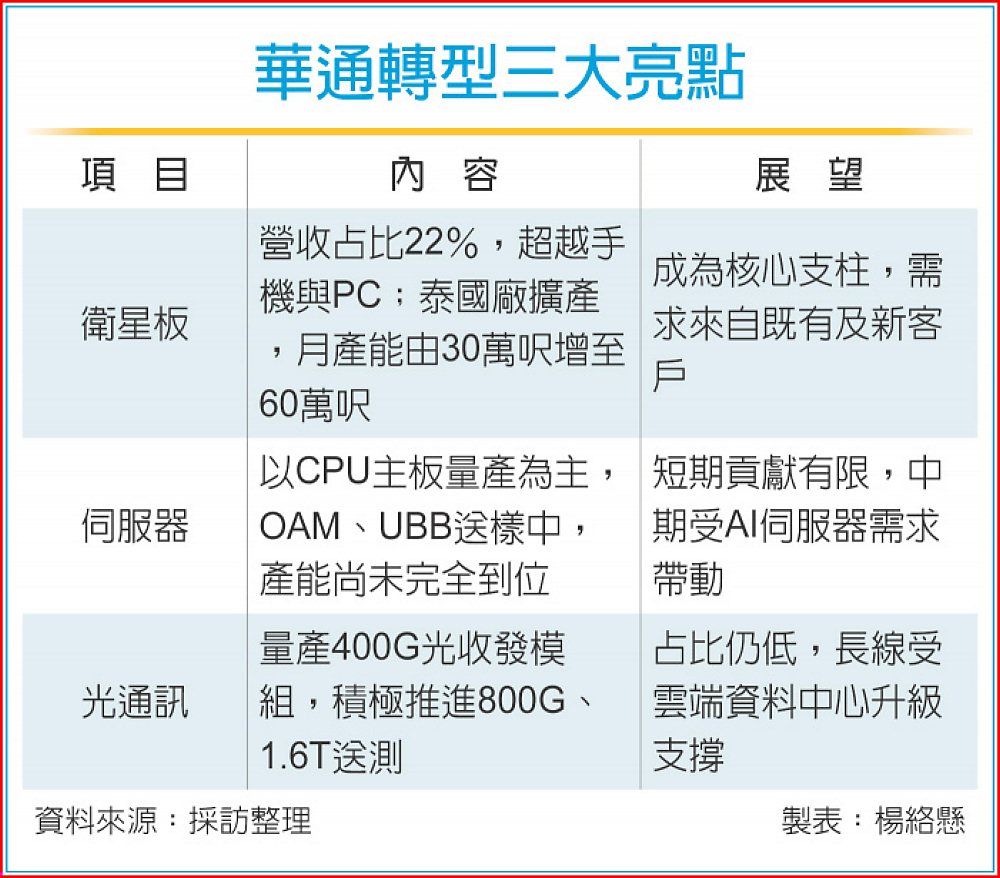 華通上半年受匯率干擾,營運焦點亦已明顯自消費性電子轉向衛星航太與高階運算,產品組合持續優化。進入第三季後,PC與手機需求降溫,短期營收承壓,公司則透過策略調整,將重心逐步移往新興應用,以為後續營運鋪路。