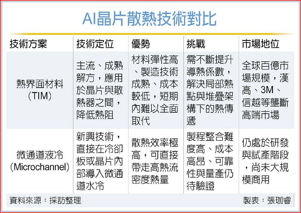 此外,仍處醞釀期的微通道蓋板(Microchannel Lid Cold Plate),以及多款熱界面材料(TIM)解決方案正逐漸浮現。