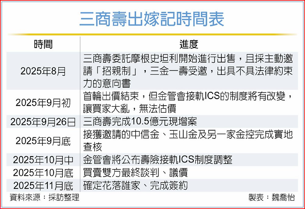 這次三商壽出售案,雙方同樣具有優勢。中信金銀彈雄厚且有豐富的壽險併購、合併經驗,在此ICS接軌之際不失為一個結親的好對象,玉山金旗下沒有壽險,同樣在員工安置上有優勢。
