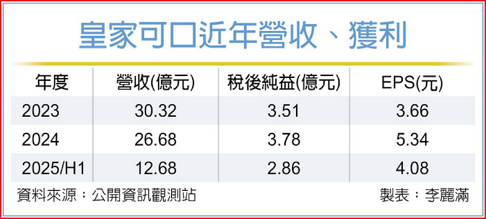 此外,皇家可口目前客戶主要以內銷為主,不過隨著餐飲業者往海外布局,在急凍熟麵生產線都具有清真食品認證下,未來也將可搶食清真市場大餅,尤其是透過泰國南僑拓展全球72個市場外,也可進軍美式賣場。
