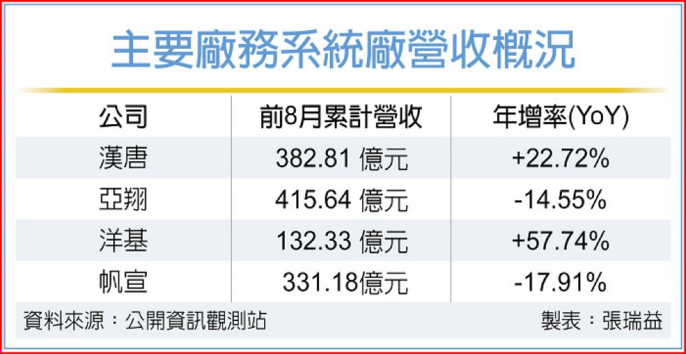 漢唐受惠台積電南科及美國亞利桑那廠工程進度加快,及先進封裝廠務建設同步展開,法人預期漢唐第四季營收可望較上季雙位數成長,全年營收也有機會再創歷史新高。