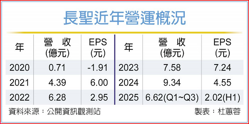 長聖今年上半年EPS為2.02元,年增約10%,法人樂觀下半年營運動能會更好,全年獲利有望再創新高。