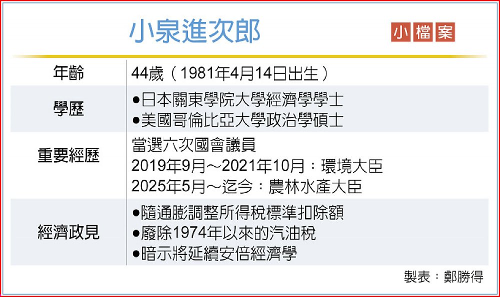 面容清秀的小泉出身政治世家、兩度入閣,但2024年9月首度角逐總裁大位失利,第一輪投票僅名列第三,無緣進入決選。他這次做足準備,宣布參選時祭出的不是空泛口號,而是具體政策細節,試圖消除外界對他年輕、缺乏經驗的疑慮。