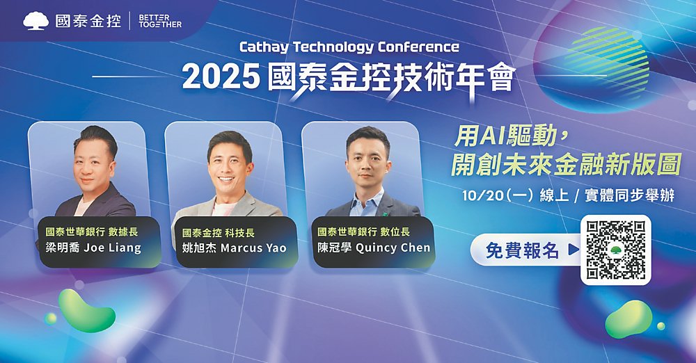 國泰金控近年積極推動數位轉型與科技創新,今年特別規劃「國泰技術雙主軸」系列活動,深化金融科技領域的產官學交流,並打造更大規模的技術交流平台。全新首推「國泰未來保險體驗日(Cathay InsurX Day)」圓滿落幕;緊接著第二波「2025國泰金控技術年會」將於10月20日盛大舉行。