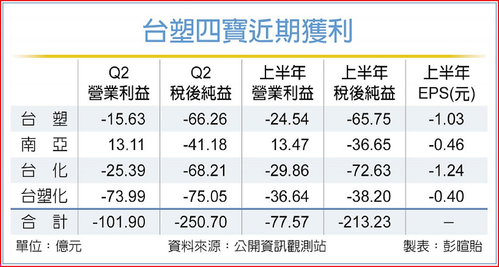 南亞在電子材料營運升溫,匯兌、現金股息入帳,加上轉投資台塑化、南亞科營運轉盈,南電收益增溫,助力第三季營運,與台化聯袂擺脫虧損陰霾。台塑因產品報價回溫力道相對趨緩,表現居四寶之末。
