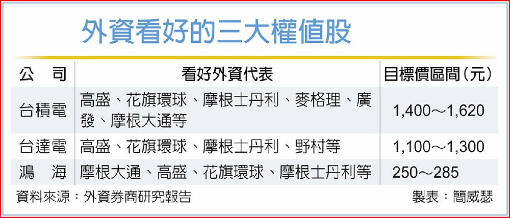 台股四大權值股全都與AI密不可分,除了聯發科先前因為5G系統級晶片(SoC)恐陷入商品化等因素,連續遭外資降評,導致股價劇烈拉回之外,其餘的三大權值股台積電、鴻海、台達電,要不是股價續寫歷史新高,就是來到波段高點附近,究其原因,外資接連拉高目標價,帶動市場重新評價行情,是其中最關鍵的因素。