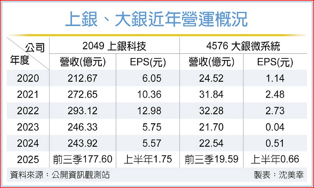 上銀集團受惠半導體業訂單回升,旗下上銀9月營收月增近10%,創近十個月新高;大銀因微米及奈米級定位平台出貨增加,9月營收年月雙增,全年營收有望雙位數成長。
