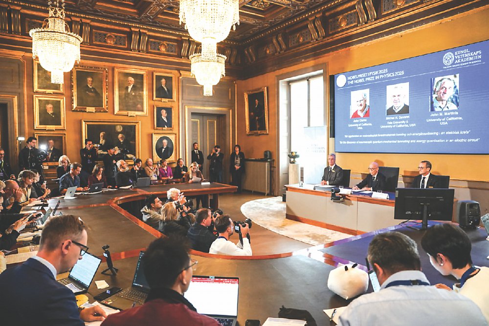 諾貝爾物理學獎7日得主出爐,由三位學者共享殊榮,分別為克拉克(John Clarke)、德沃雷(Michel H. Devoret)、馬丁尼斯(John M. Martinis),表彰他們在量子力學的傑出貢獻,其研究成果造就了下一世代的數位技術。