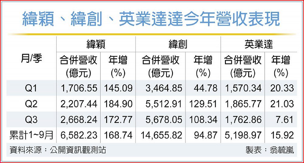 受惠AI晶片大廠積極推動、AI基建需求持續暢旺,緯創及旗下轉投資之緯穎第三季業績雙雙呈翻倍年增、再創歷史單季新高,亦推升各自的今年前三季累計合併營收分別達1兆4,655.82億元、6,582.23億元,同寫歷史新猷,緯創更有超越去年全年度營收的表現。