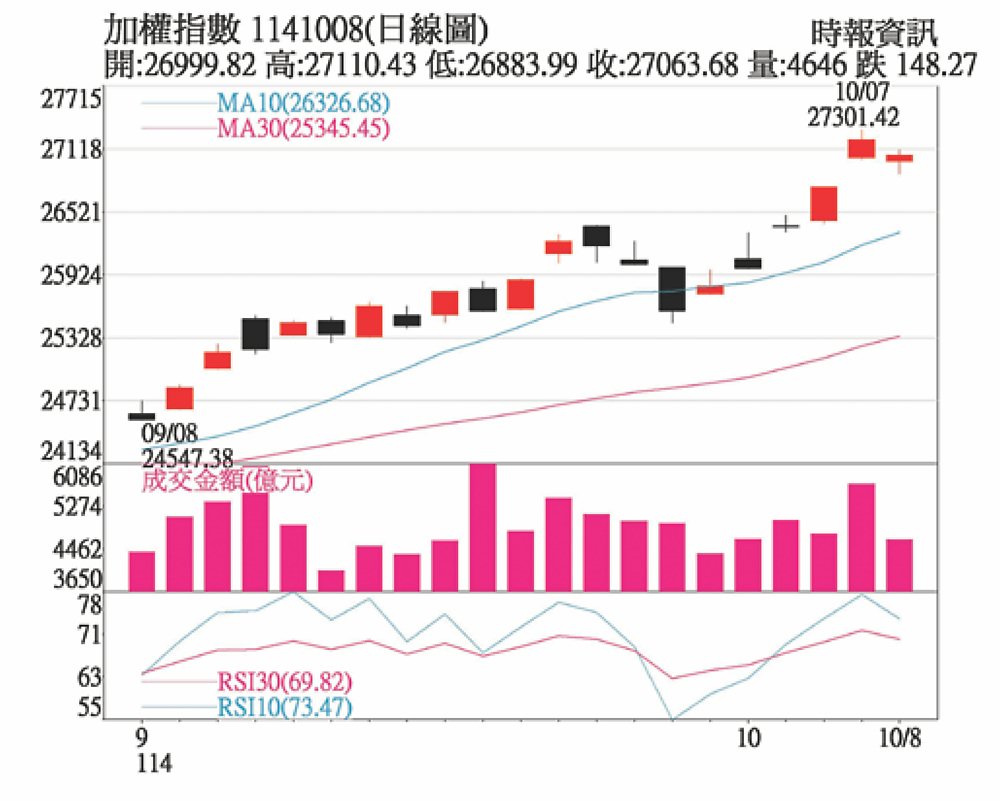 盤勢分析:考量中秋連假過後,多位聯準會官員陸續發表談話,市場聚焦官員們對於美國勞動市場趨緩看法,以作為10月降息依據。本周台股僅有三個交易日,盤面上觀望氛圍恐逐日遞增,不排除9日會有連假前賣壓,所幸當前資金並未從科技權值股中退出,台股多方格局並未改變,且隨著台積電法說會將近,有望釋出半導體正向展望,預期電子族群將持續由AI概念股領軍,雙十連假過後加權指數仍有表現空間。
