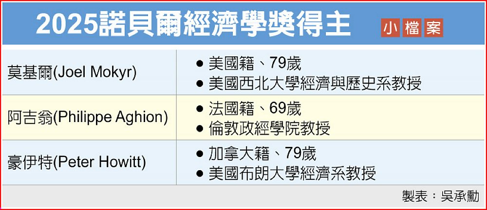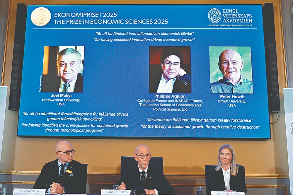 諾貝爾經濟學獎揭曉,表彰三位學者莫基爾(Joel Mokyr)、阿吉翁(Philippe Aghion)和豪伊特(Peter Howitt),發現了創新是如何推動經濟持續成長。然而面對世界當前情勢,後兩位學者也點名批評美國總統川普實施的貿易戰可能阻礙經濟成長。