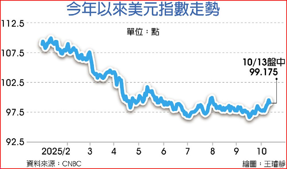 美國總統川普對於中國的態度放軟,帶動市場TACO(Trump Always Chickens Out,川普總是臨陣退縮)交易再起,風險資產全面走高。除了美元指數反彈外,加密幣也一甩崩盤陰霾,比特幣重新站回11.5萬美元關卡,金價與銀價則在市場不確定性仍高下再創新高。