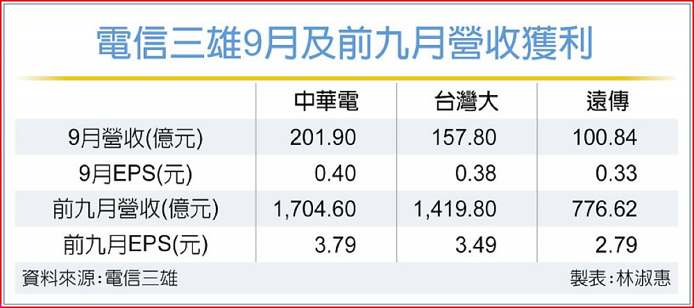 中華電9月自結合併營收201.9億元,年增3.6%,稅後純益30.8億元,每股稅後純益(EPS)0.4元。營收成長動力來自強勁的手機銷售表現與子公司挹注,加上電信核心業務延續成長動能,寬頻與行動營收年增率皆續創3%以上佳績。雖受去年同期一次性專案認列的高基期影響,整體資通訊營收略減,但重點業務表現持續穩健。累計前九月合併營收1,704.6億元,稅後純益294.1億元,EPS為3.79元。中華電信強調,累計營收、稅後純益、EPS等各項營收獲利指標皆超越年度財測高標。