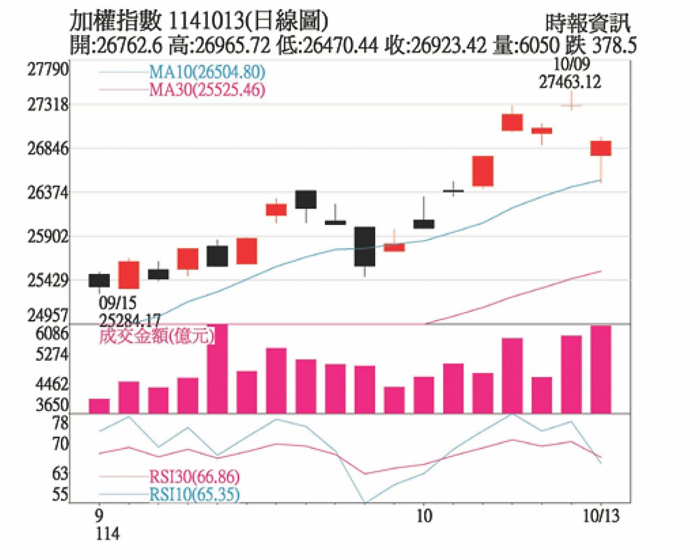 市場擔心,美中在11月10日關稅豁免期到期前關係再度陷入緊張,貿易戰升級將威脅全球經濟與美國通膨,若事件未有轉寰,將衝擊消費與資本市場投資信心。造成10月10日美股重挫,道瓊、標普500、那斯達克、費半跌幅各為1.9%、2.7%、3.6%、6.3%,大宗原物料包括WTI油價重挫,美國掛牌中概股跌幅深,阿里巴巴、百度跌幅超過8%。VIX回升至22,但未達到4月6日的60水準。