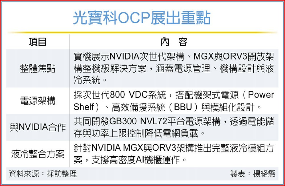 隨AI算力進入高功率、高密度的新時代,電源與散熱不再只是附屬環節,而是決定系統效能與穩定的核心,光寶科藉OCP舞台整合展示其在電源管理、機構設計與液冷技術的全方位能力。