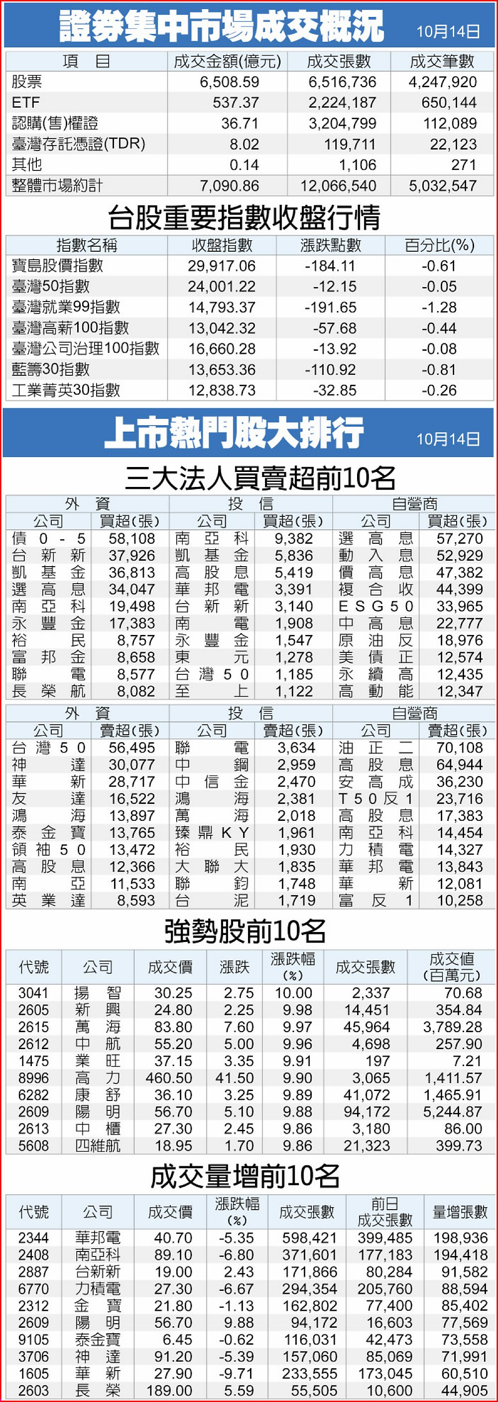 證券集中市場成交概況、上市熱門股大排行