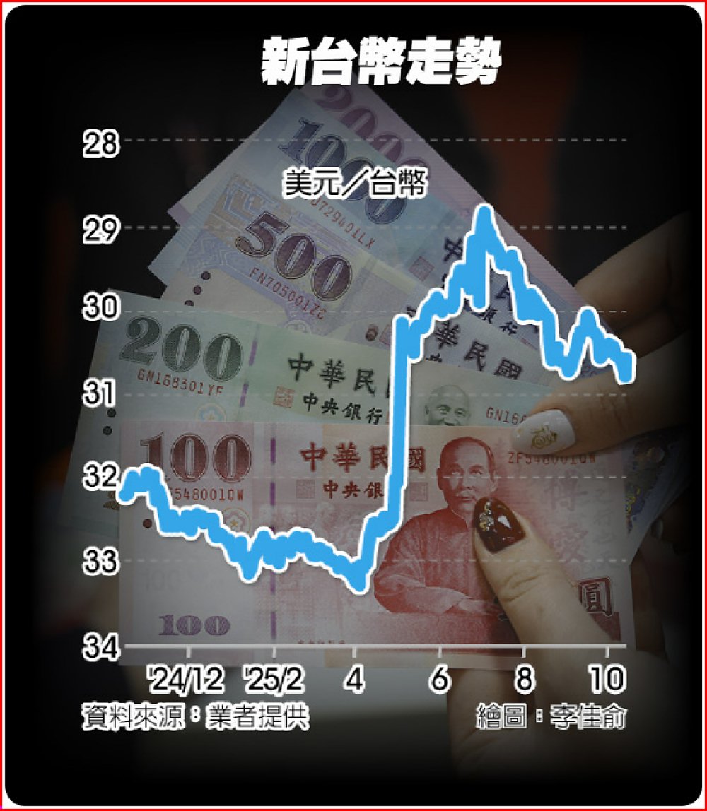 整體而言,新台幣單日升幅在主要亞幣居中,表現最強的是泰銖強漲0.88%、韓元狂升0.82%。