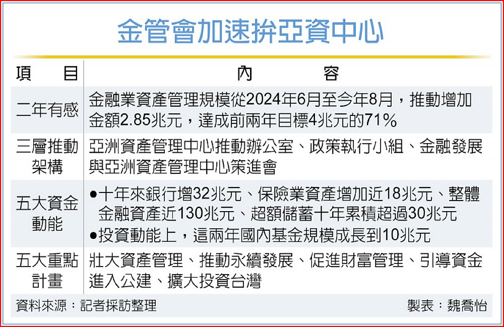國發會主委葉俊顯也指出,為協助產業立足台灣、布局全球,健全的金融市場支持產業發展至關重要,政府透過推動六大核心戰略產業和亞洲資產管理中心政策,強化台灣的經濟競爭優勢。