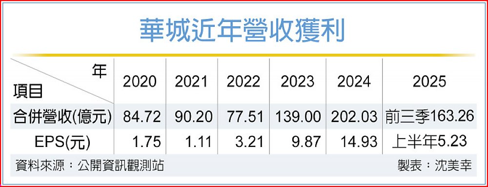 許逸德指出,華城近三年合併營收成長3倍,從2022年的近80億元,2023年139億元,到去年突破200億元而達202.03億元,毛利率達35%,今年上半年毛利率更超過36%。華城上半年外銷營收占比過半達54%,其中40%是外銷美國。