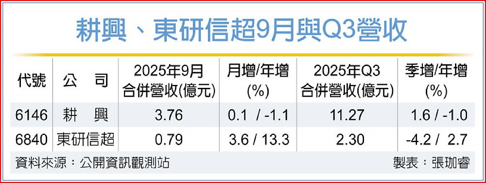 電子檢測服務需求隨AI伺服器熱潮升溫,東研信超(6840)龜山二廠9月啟用,主攻AI伺服器整機與關鍵周邊設備檢測,帶動營收呈年、月雙增;耕興(6146)則瞄準邊緣AI市場,第四季旺季加持下,力拚全年營收恢復成長。法人分析,電子檢測產業正受惠AI硬體滲透率提升與新一代伺服器產品陸續導入趨勢。