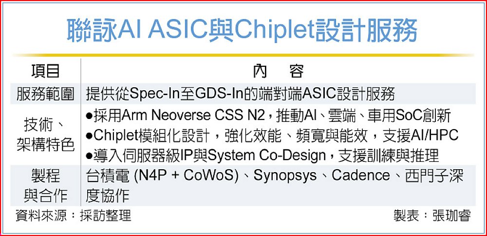 業者指出,聯詠從消費性IC領域,成功延伸至伺服器與ASIC晶片開發,成為進軍AI硬體基礎設施的重要跳板;隨AI伺服器與邊緣運算需求暴增,將是繼原有顯示驅動IC與影像處理器後的新成長引擎。IC設計業者分析,聯詠Neoverse CSS N2 SoC晶粒架構具備高度模組化與重複使用特性,可與生態系中超過60家合作夥伴I/O、加速器晶粒整合,打造可客製化的AI、HPC與車用ASIC方案。