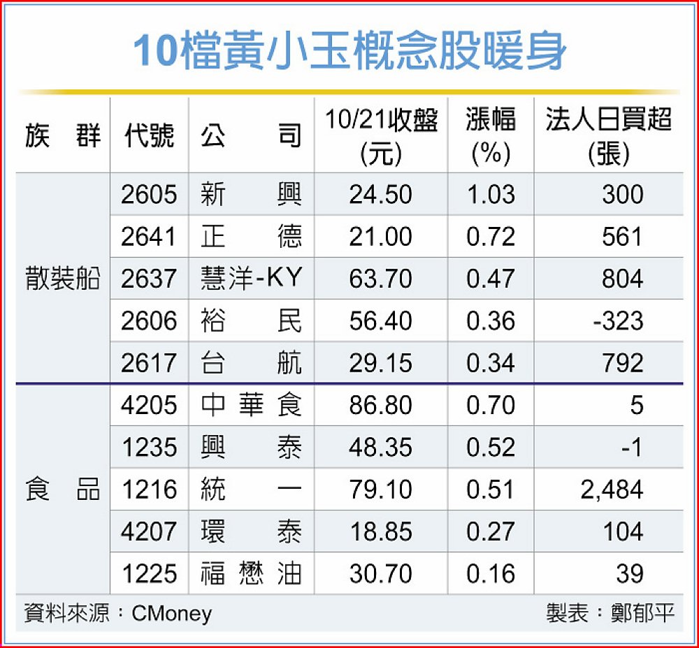 觀察盤面,儘管近期市場資金高度集中電子股,然已有部分「黃小玉」概念股提前醞釀漲勢。