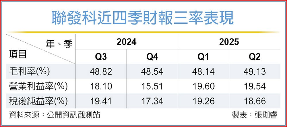 聯發科的第三季合併營收為1,421.97億元,毛利率預估47%正負1.5個百分點區間,在匯率有利條件下,有望優於預期;聯發科持續透過產品結構調整,增加旗艦級晶片出貨比重,並打入韓系品牌旗艦級平板,相應減緩毛利率壓力。