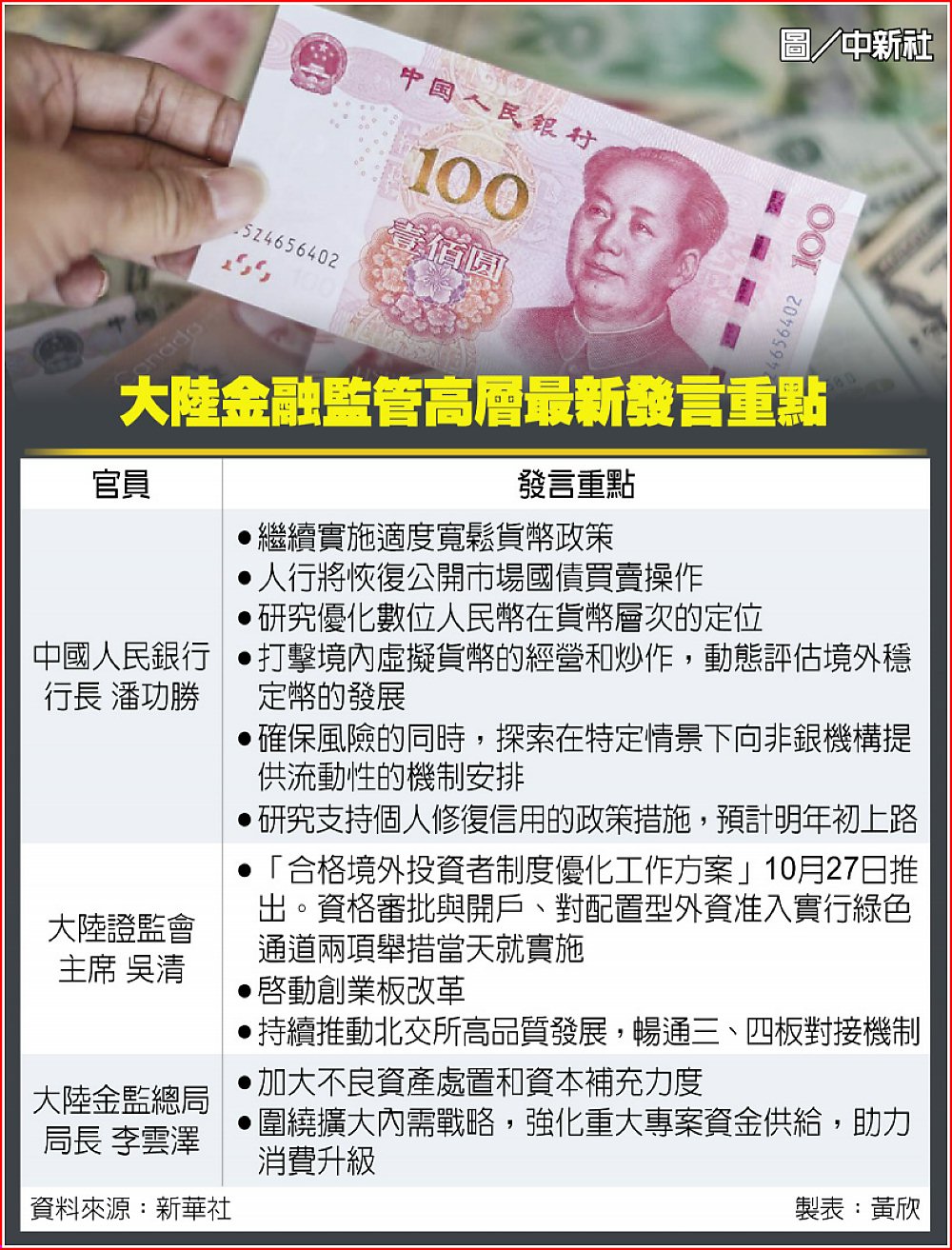 吳清則表示,將啟動創業板改革,設置更加契合新興領域和創新企業的上市標準,為新產業、新業態、新技術企業提供更多元的金融服務。為了吸引外資,證監會也在同日公布「合格境外投資者制度優化工作方案」,包括優化准入管理、提高投資運作效率、擴大投資範圍等。