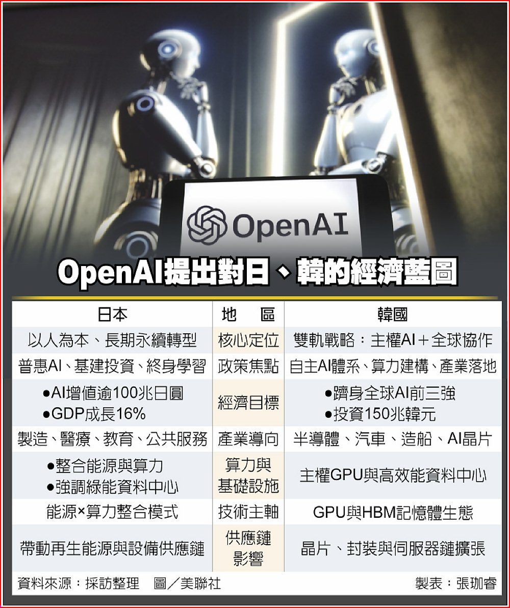 台灣亦為出口型經濟,未見OpenAI所提出的經濟藍圖。隨AI國家級合作架構成形,亞太供應鏈重構勢在必行。對台廠業者而言,如何在日韓分進合擊的策略中確保技術話語權與供應鏈地位,將是下一階段的關鍵課題。