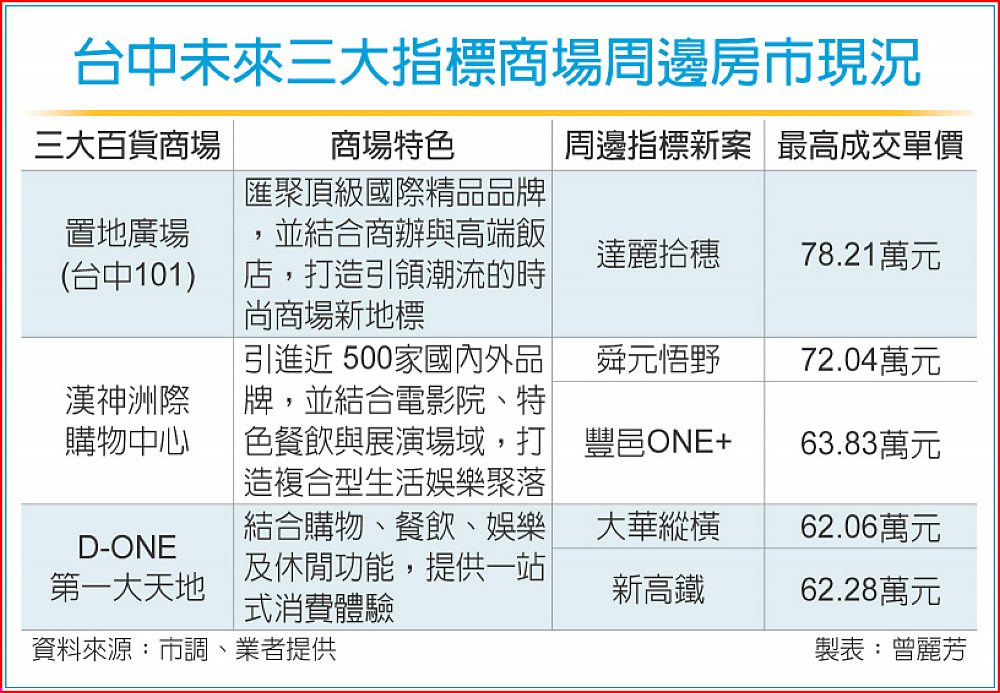 台中迎來「百貨巨浪」熱潮,包括漢神洲際購物中心、D-ONE第一大天地、台中101等三大百億級旗艦商場,未來幾年將陸續登場,隨著漢神洲際購物中心進入開幕倒數、D-ONE第一大天地積極招商,大台中百貨版圖不僅快速擴張,同時也已帶動三大區塊周邊房市熱度升溫。