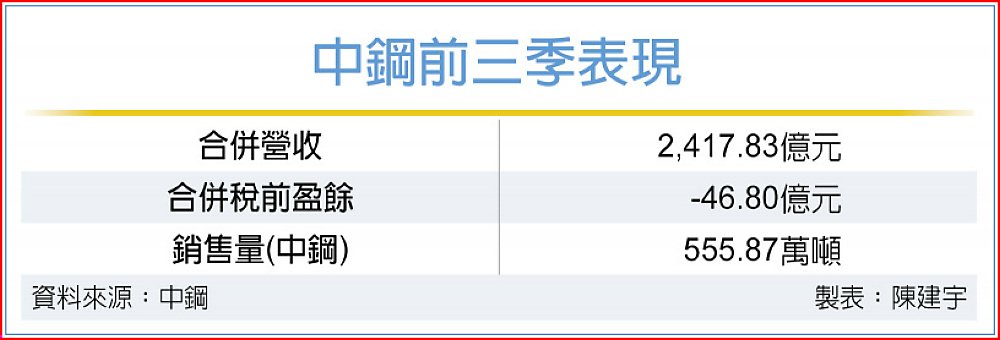 不過中鋼前三季稅前虧損已達46.80億元,知情人士認為,在只剩最後一季的狀況下,中鋼全年想轉虧為盈難度相當高。