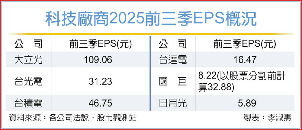 國巨*(2327)公布第三季財報,稅後純益登12季新高,每股稅後純益3.1元,累計前三季繳8.22元財報成績單,以股票分割前計算,相當於32.88元,國巨看升第四季AI稼動率,一舉抵銷消費性電子傳統淡季的疲弱,也將帶動平均稼動率走揚。