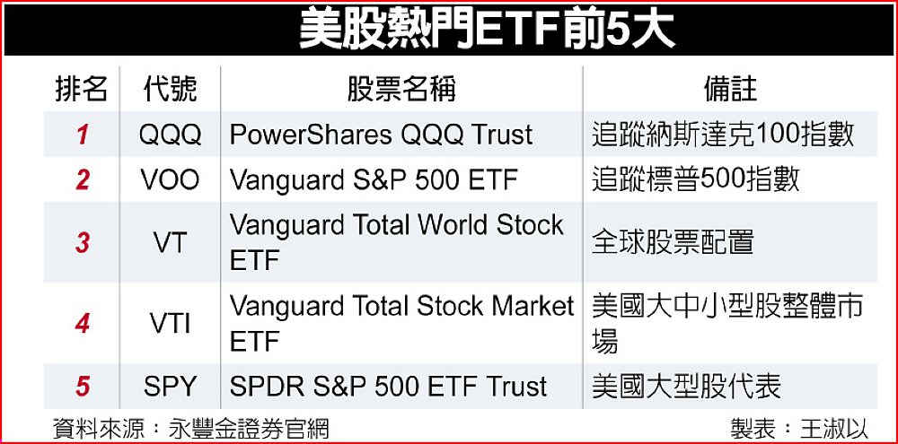 在ETF方面,VOO(Vanguard S&P 500 ETF)與QQQ(Invesco NASDAQ-100 ETF)是投資人定期定額長期配置首選,更凸顯AI主題ETF崛起。