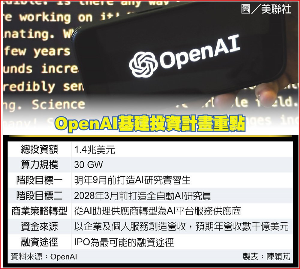 OpenAI近來陸續與多家科技巨頭簽署龐大AI基礎建設合作協議,包括輝達、博通與甲骨文等。這些計畫讓OpenAI成為全球「AI超級規模企業」之一,與亞馬遜、Alphabet、Meta及主要投資者微軟等並列。