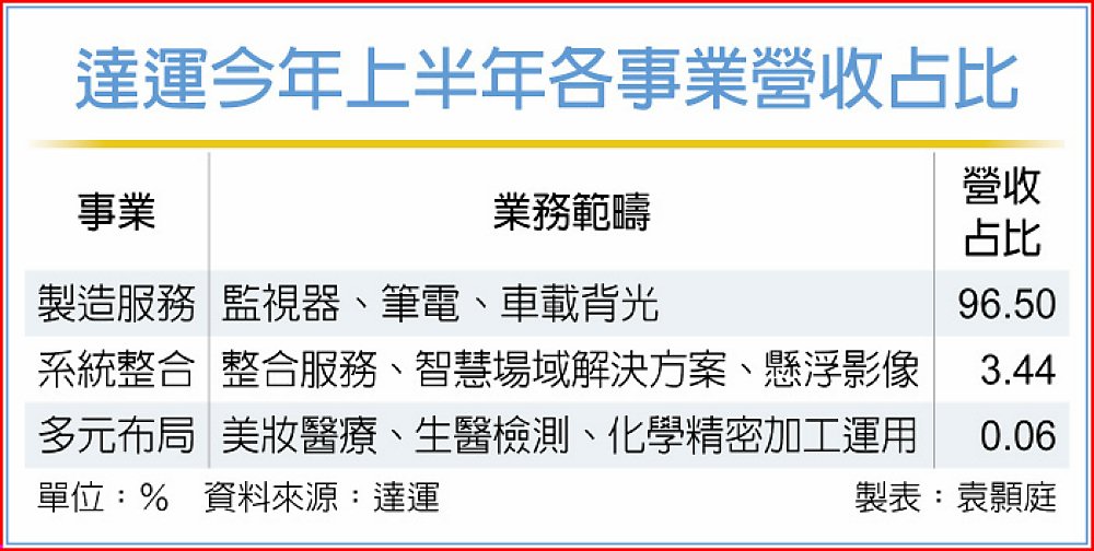 達運台中大雅廠過去生產背光模組及PMMA高分子酯粒,隨背光模組產線外移,目前只留下一小部分電子白板、數位看板等專案系統產品產線。大雅廠兩棟大樓騰籠換鳥,改造為生醫研發造中心,一棟是微一生醫的微針技術研發中心,另一棟則是晶至的研發和製造據點。隨新廠量產,2026年生醫事業起飛,預期新事業營收將有50%以上的高成長。