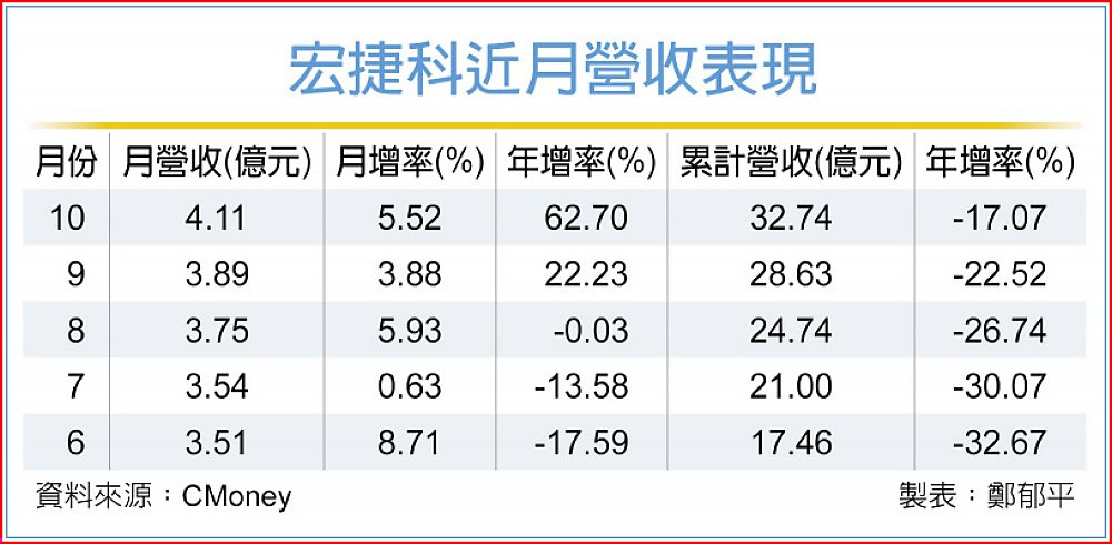 宏捷科今年本業重回成長,展望第四季,公司指出,隨製程技術持續優化並獲得終端客戶高度肯定,宏捷科市占率穩步提升,接單動能暢旺,考量客戶端庫存偏低,對年底前營運審慎樂觀,預期營收成長趨勢延續。法人看好,宏捷科手機PA及非手機PA產品均有機會正向,單季營收有望季增10%~15%,創下今年最旺單季表現。