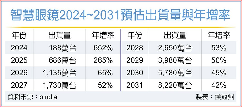 台EMS廠積極搶進布局。鴻海宣布攜手Porotech進軍AR眼鏡,並在台中建立MicroLED晶圓製程產線,預計2025年第四季投入量產;同時也與諾貝爾視光科技合作,聚焦眼視光學與驗光醫學的臨床研究,為未來智慧穿戴與視覺健康產業奠定基礎。
