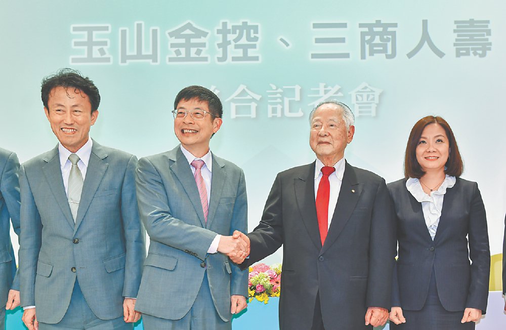 玉山金及三商壽經營團隊5日晚間共同舉行記者會。玉山金董事長黃男州指出,就金控而言,今年增加了投信,保險的業務若能整合起來,版圖會更完整。但未來仍會以銀行為主體。