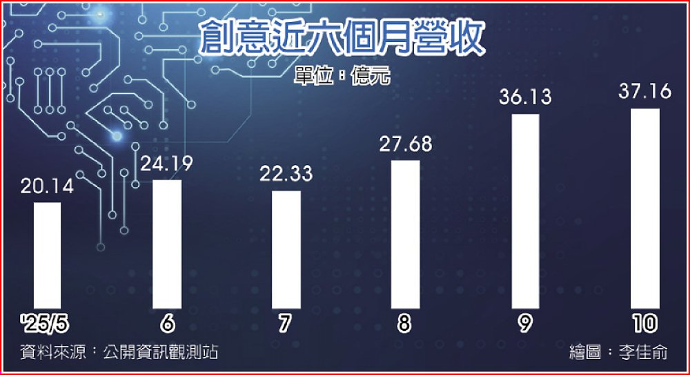 創意累計前十月合併營收254.57億元,年增24.2%;其中10月營收再創新高,反映AI相關ASIC專案與高速介面產品放量。創意第三季單季每股稅後純益(EPS)6.47元,前三季稅後純益26.09億元、EPS 19.48元,顯示AI應用帶動的高階晶圓產品(Turnkey)與量產貢獻逐步放大。展望本季,隨Turnkey動能延續,營運有望續攻高峰。
