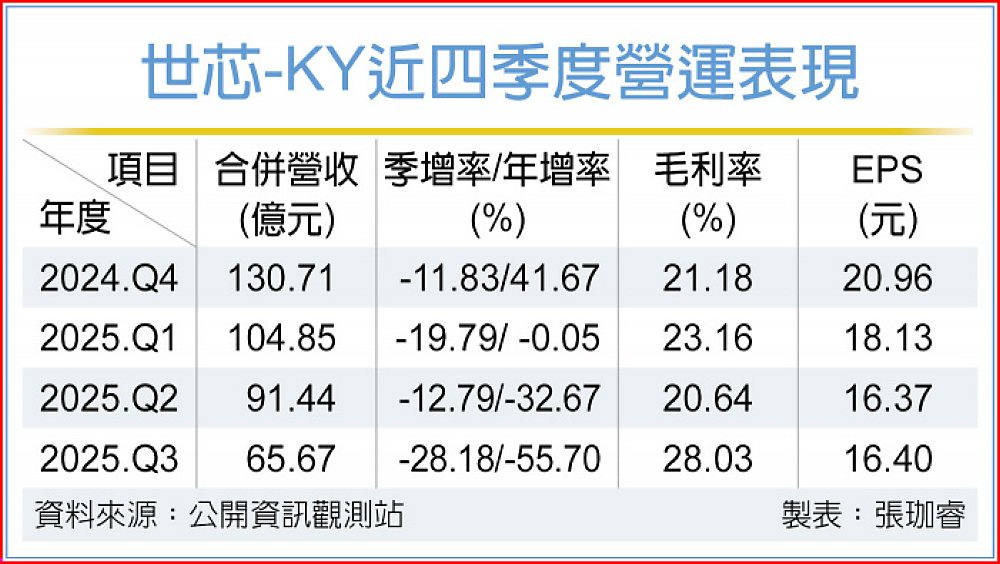 世芯第三季合併營收65.67億元,季減28.1%、年減55.7%,稅後淨利13.27億元,季增0.3%、年減25.9%,每股稅後純益(EPS)16.4元。營收下滑主因北美主要雲端服務客戶5奈米AI晶片於上半年結束生命週期;累計前三季EPS為50.89元。