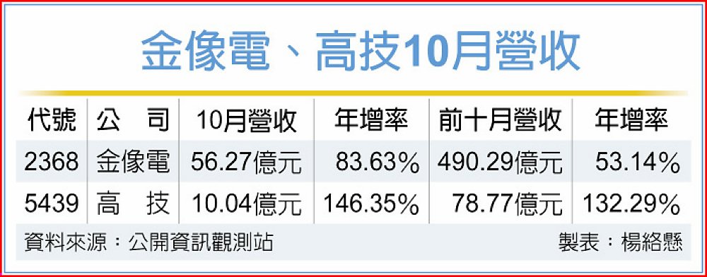 高技10月營收10.04億元,月減8.97%、年增146.35%;累計前十月營收78.77億元,年增132.29%。受惠美系大客戶新一代ASIC伺服器平台導入,UBB厚大板出貨顯著放量,推升單月營收與產能利用率攀高。法人指出,高技已在特定雲端平台取得穩定市占,訂單能見度延伸至2026年,需求屬結構性成長。