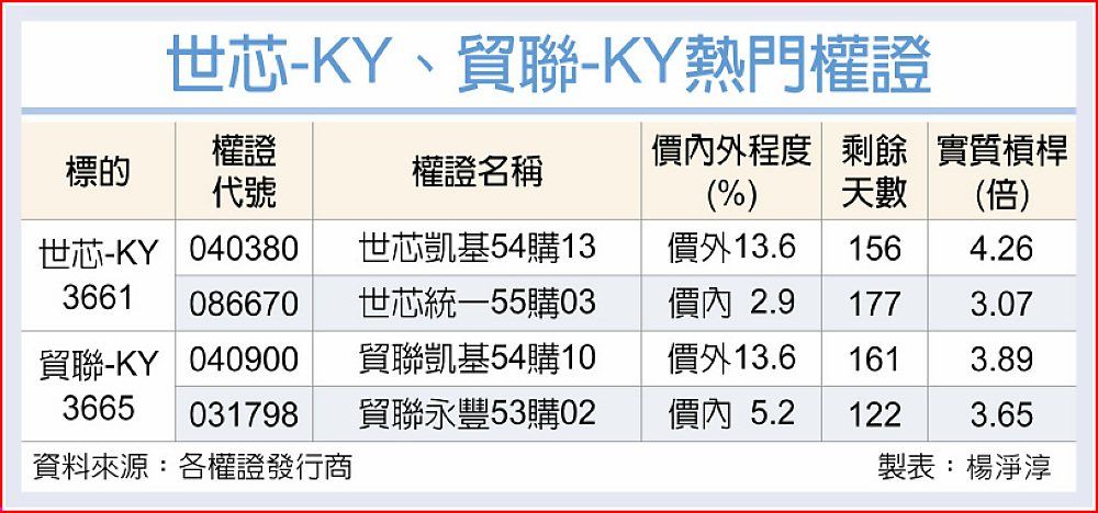 若股價短線方向尚未明朗,可先以長天期權證小額試單,世芯-KY相關權證中,包括 世芯凱基54購13、世芯統一55購03等,到期天數皆在150天以上,槓桿倍數相對較高。貿聯-KY於10日收盤再創新天價1,535元,盤中最高1,550元。法人表示,貿聯-KY第三季財報大幅優於預期,而國際連接器龍頭安費諾目前約40倍本益比,考量貿聯持續受惠AI 所帶動的長期成長趨勢、產品組合優化與持續拓展新客戶,距離目標價尚有空間。