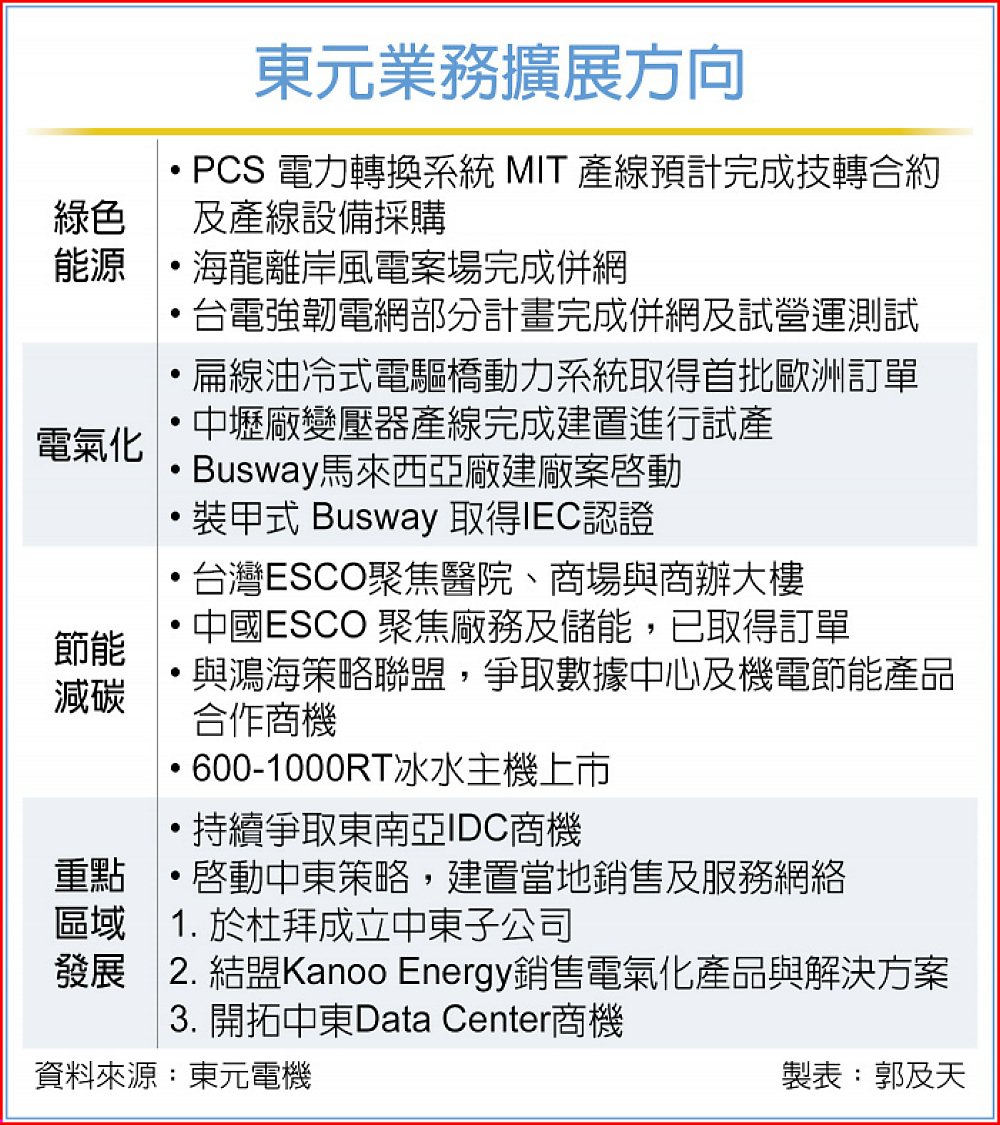 東元13日舉行法說會,表示鎖定資料中心(IDC)商機,取單明年聚焦在台灣,美國則在2027年會較明朗,並積極擴大海外布局,持續爭取東南亞IDC商機,也啟動中東策略,建置當地銷售及服務網絡,開拓資料中心商機。