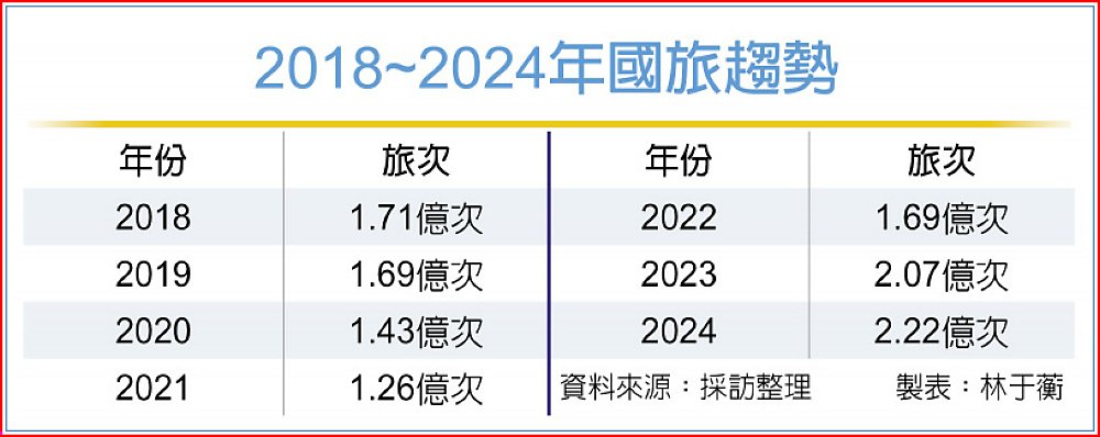 此外,也規劃與遊樂園合作推出留宿方案,並提供企業員工旅遊獎勵方案及Taiwan PASS平日國旅優惠方案等,目標是拚衝刺國旅邁向兆元產業。