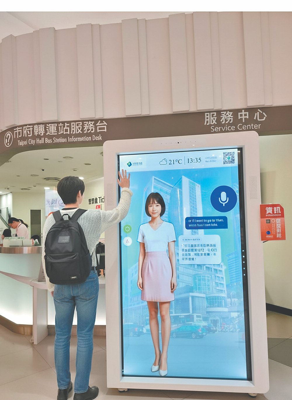 統一開發總經理陳國煇指出,AI客服提升服務效率與用戶體驗,降低營運成本。達運開發的86吋、200公分高AI虛擬客服,採用真人客服形象進行生成式AI擬真設計,充分展現市府轉運站專業企業形象。